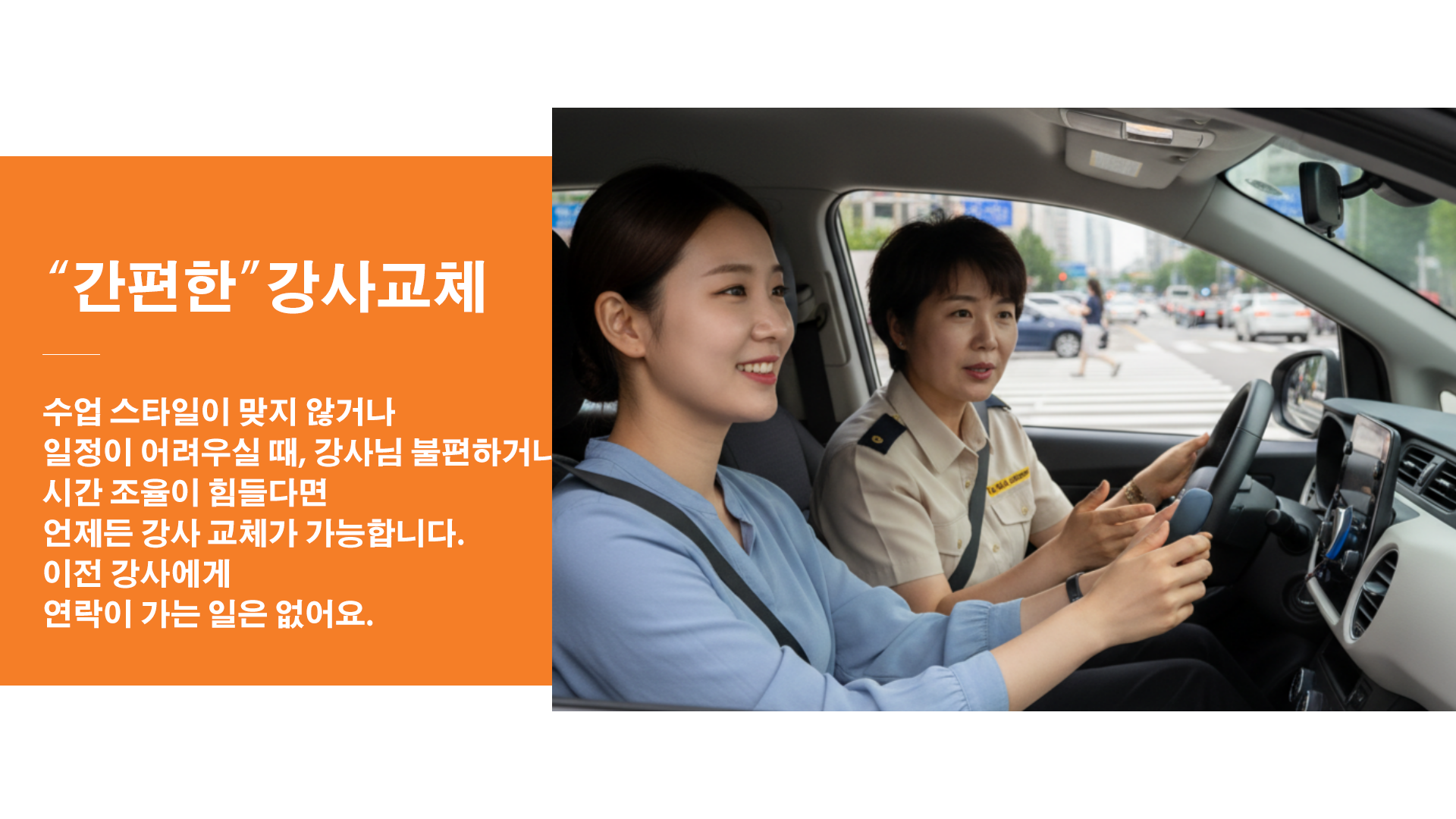 A4. 네. 보조 브레이크 장착 연수 차량 또는 개인 차량 중 선택할 수 있습니다. 자차로 연수 시 실전 적응력이 향상됩니다.